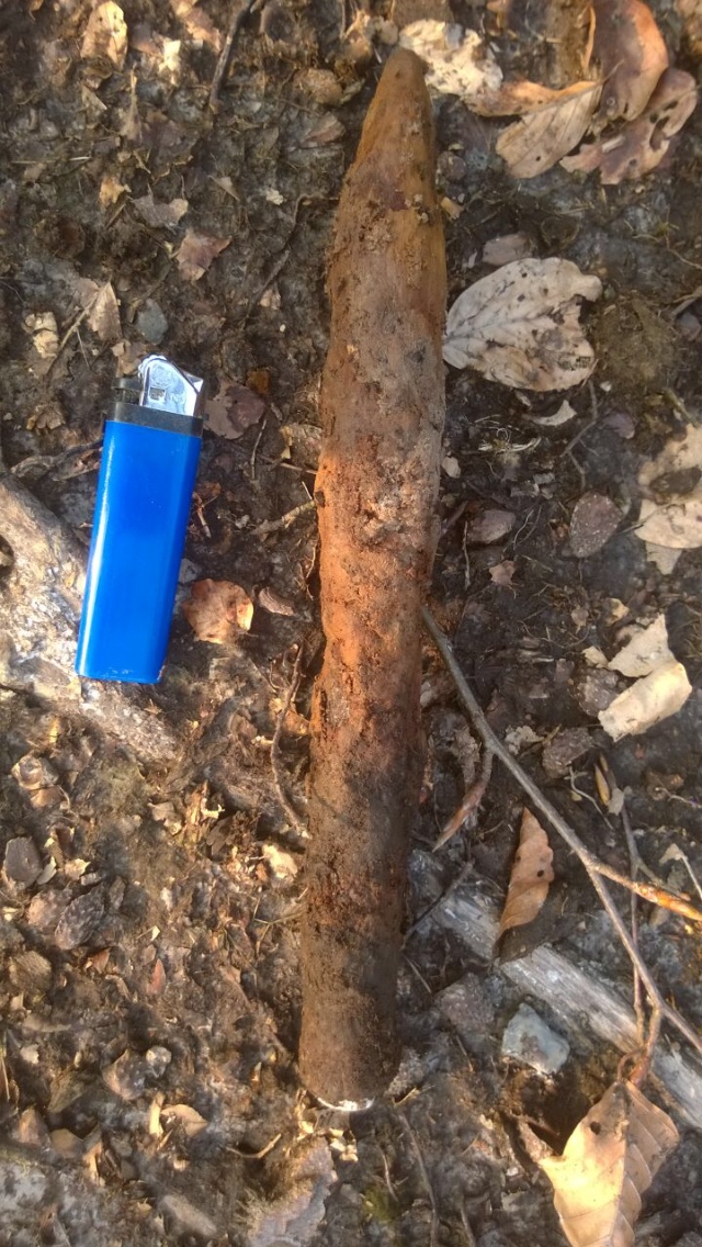 Man hat leider auch immer wieder Sachen dabei, an den man kein Interesse hat! Oft ist es ja nur Müll, aber auf sowas kann ich echt komplett verzichten! Hierbei handelt es sich um eine 22 mm Granate . Diese Granate wurde im 2. Weltkrieg von Panzern und Flugzeugen verschossen! Nachdem ich erkannt habe, dass es sich um ein Kampfmittel handelt wurde umgehend der Kampfmittelräumdienst verständigt! Zur besseren Einschätzung habe ich ihn gleich Bilder mitgeschickt. Am nächsten Tag kam dann, wie verabredet, der Kampfmittelräumdienst und holte die Granate ab . Die beiden Männer waren echt nett und haben auch kein komischen Fragen gestellt.